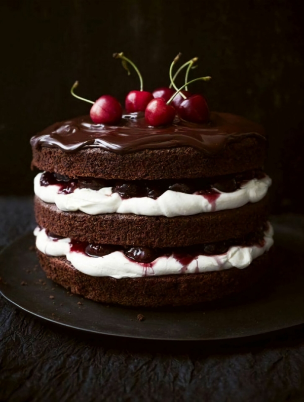 - Cerezas de estación sobre una suave crema Chantilli en dos cortes en tierna bases de Brownnie bien chocolatoso. Con un suave baño de chocolate…